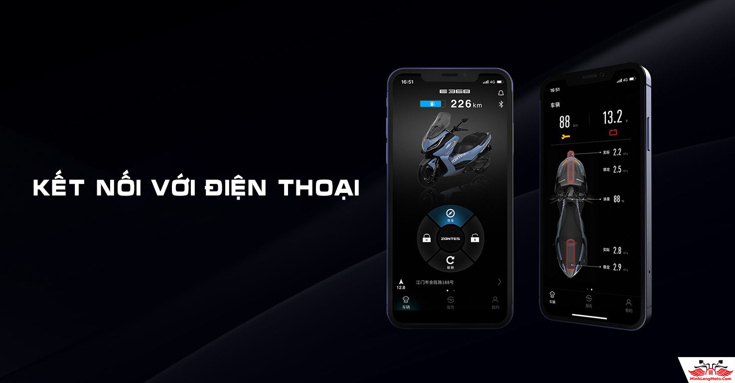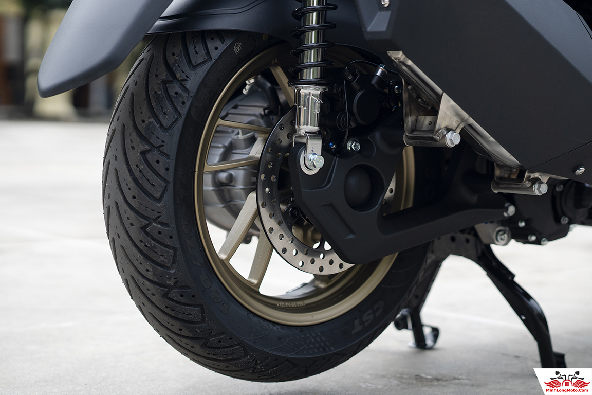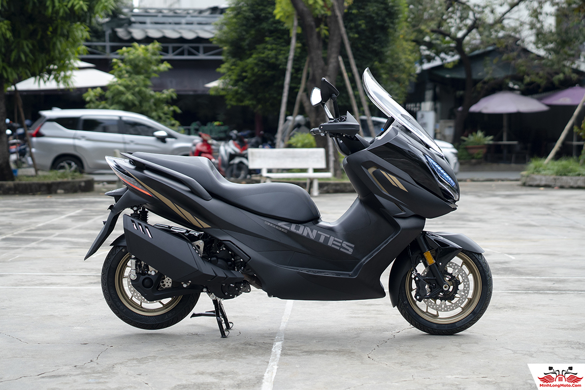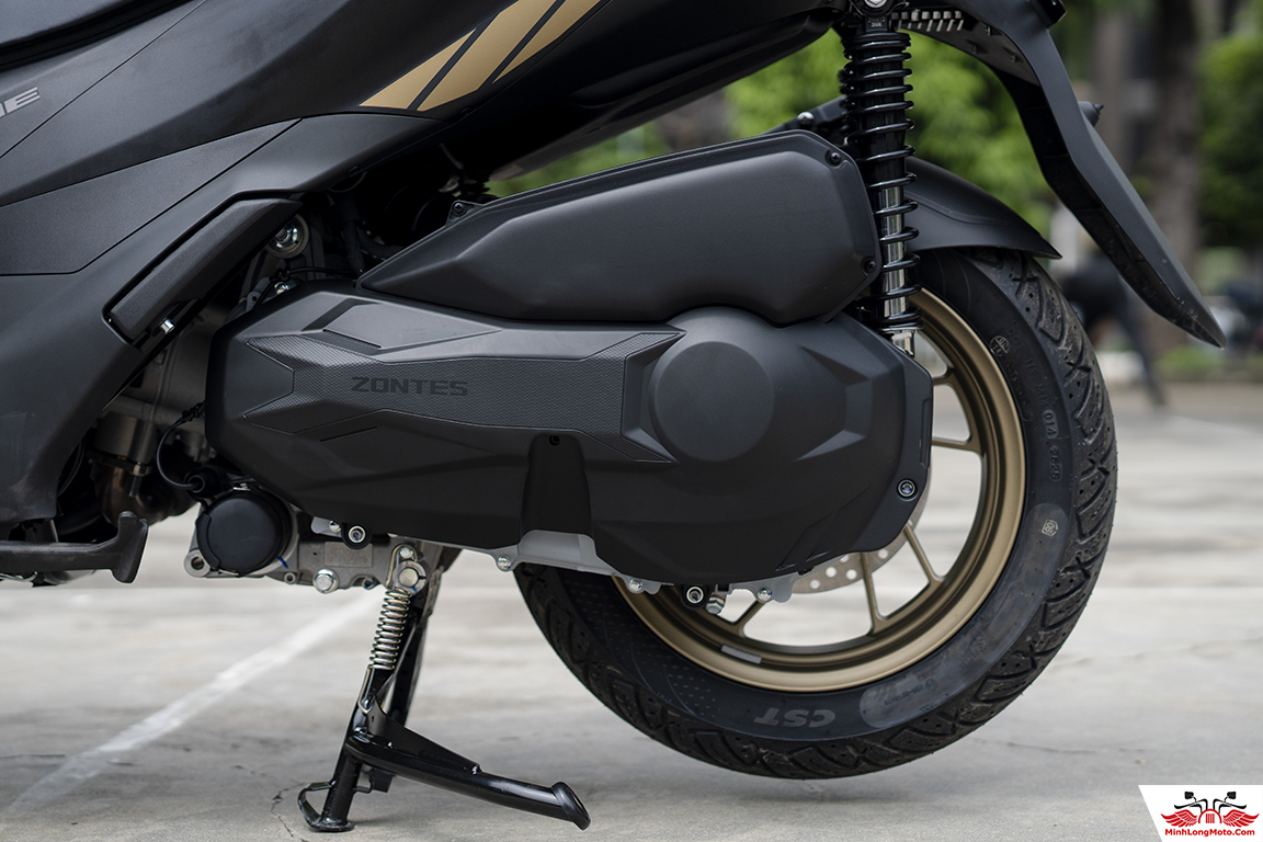 Zontes 368K trang bị bộ lốp bán trơn vành rộng 120/70-15 trước ,140/70-14 sau, tăng khả năng bám đường, an toàn.