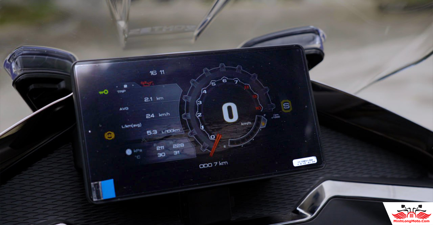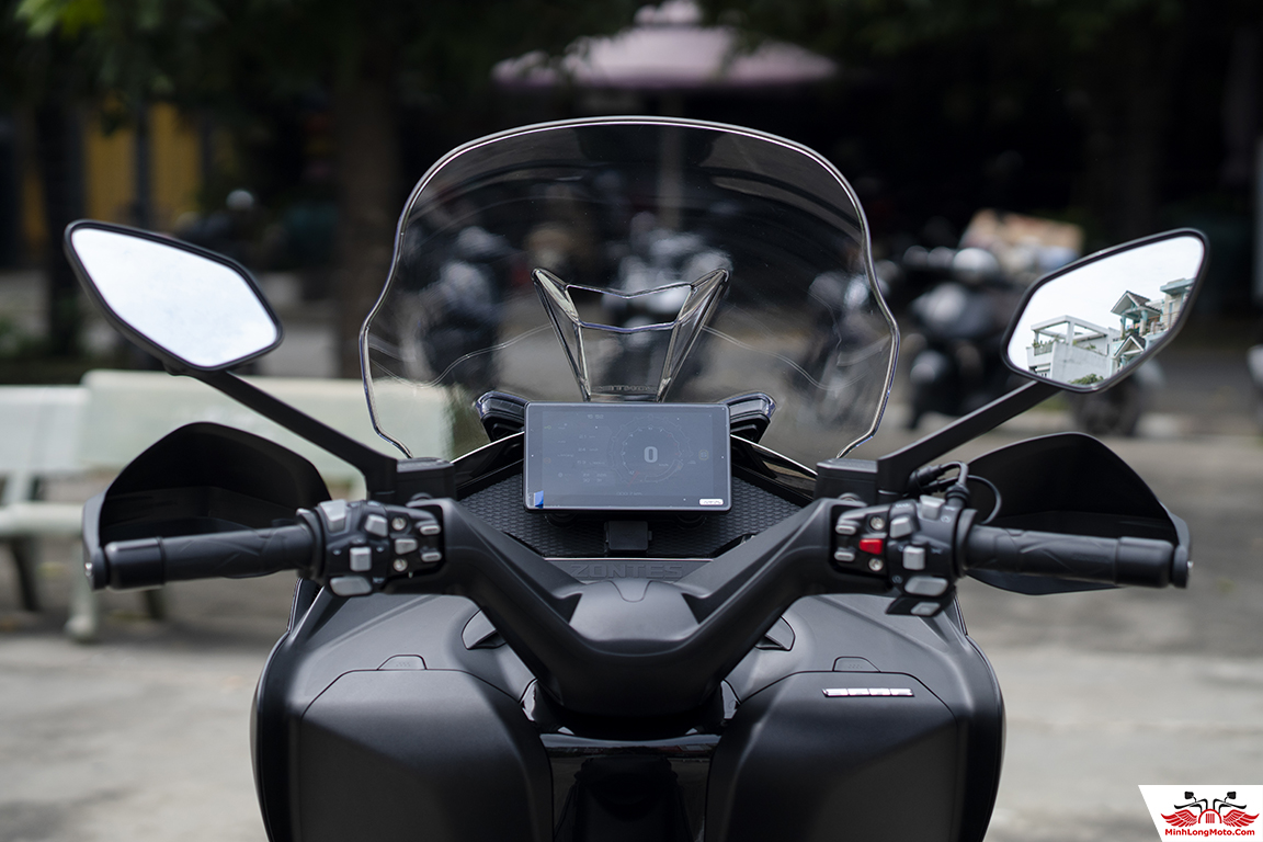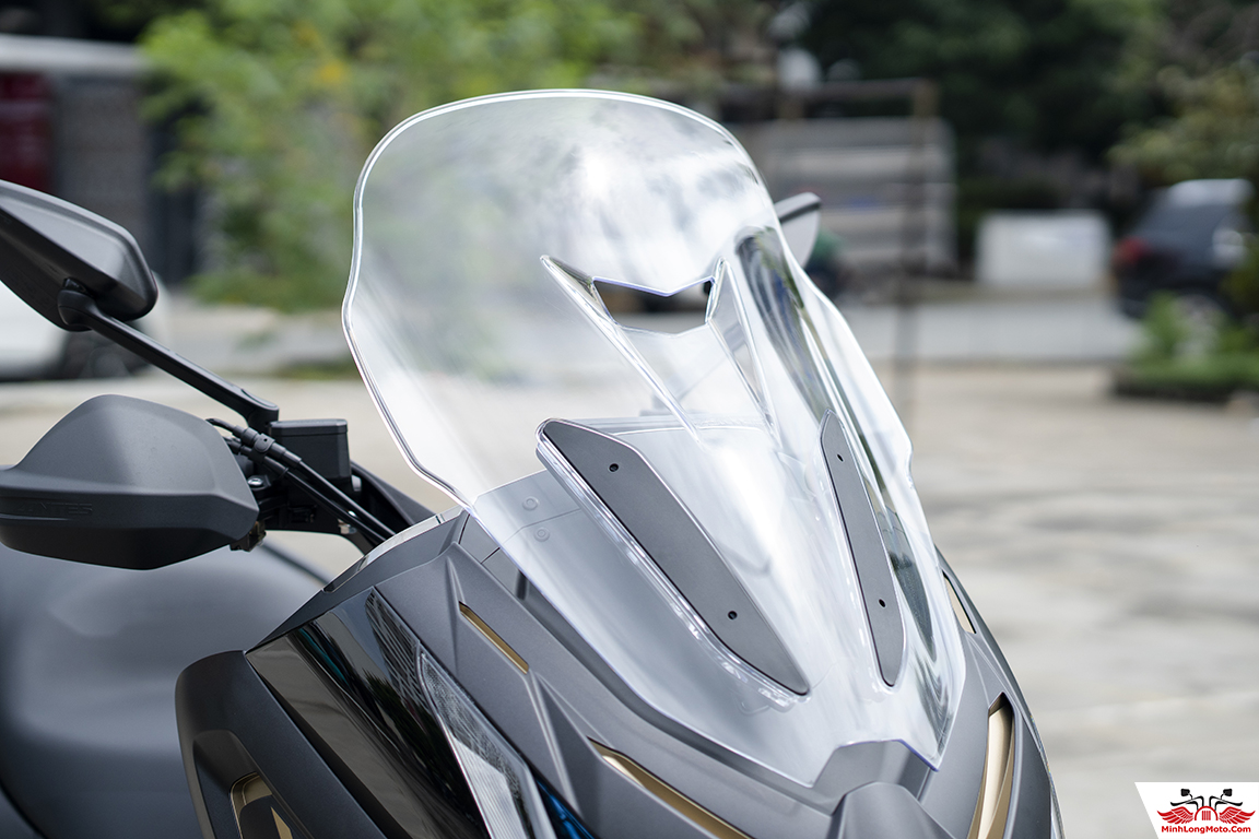 Kính chắn gió điện tử lớn được nâng cấp lớn hơn, hạn chế mệt mỏi khi di chuyển nhanh trong thời gian dài.